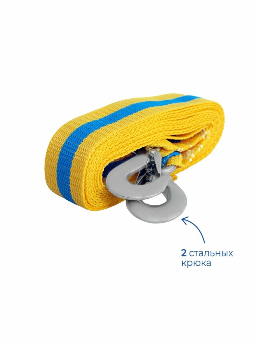 Трос буксировочный лента 5 т, 2 крюка, в блистере (стропа усиленная)