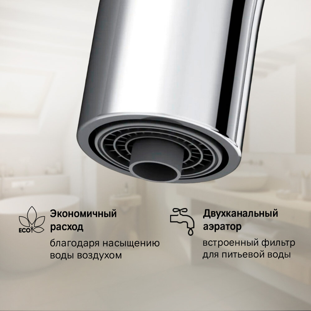 | Отзыв: | Пока не подключали фильтр. Так что не знаю как работает. Возник вопрос, где взять аэратор, если этот выйдет из строя. Этот имеет отверстие для фильтр воды в центре.