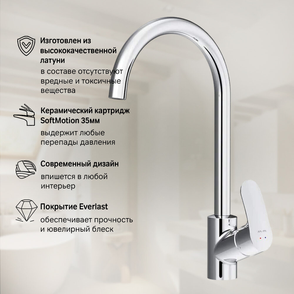 Смеситель для кухни AM.PM Jump с фильтром для питьевой воды, кран для раковины на кухню для мойки, смесители краны, поворотный излив, управление подачей воды одной ручкой, латунь