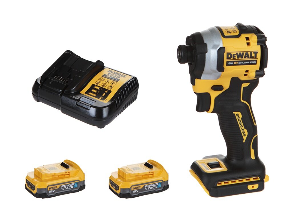 Бесщеточный импульсный шуруповерт DEWALT 18 В XR, патрон 6.35 мм (1/4"), Li-Ion батарея POWERSTACK, Multi-voltage з/у, TSTAK DCF850E1T-QW