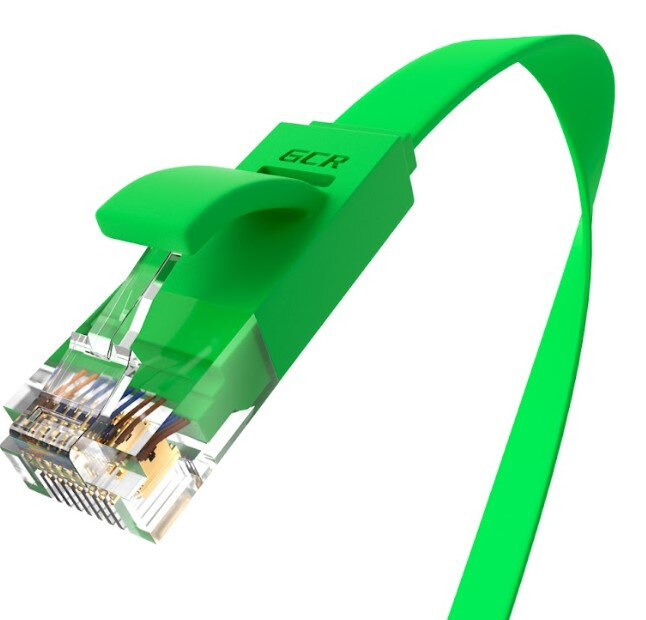 LAN кабель 15м GCR PROF плоский UTP cat.6 10 Гбит/с RJ45 LAN кабель для интернета медный контакты 24K GOLD (GCR-LNC62) зеленый