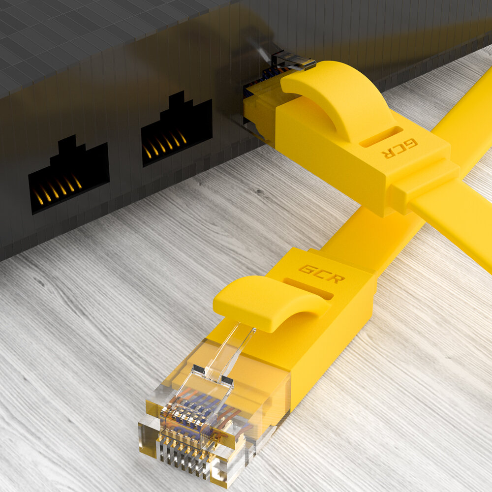 Кабель для интернета GCR PROF плоский UTP cat.6 10 Гбит/с RJ45 LAN медный контакты 24K GOLD (GCR-LNC62) желтый 3.0м