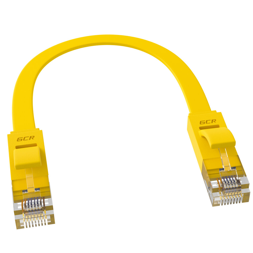 GCR Патч-корд 1.0m, кат.6, PROF, плоский,прямой, UTP, медь, желтый, 30 AWG, ethernet high speed 10 Гбит/с, RJ45, T568B (GCR-LNC622-1.0m)