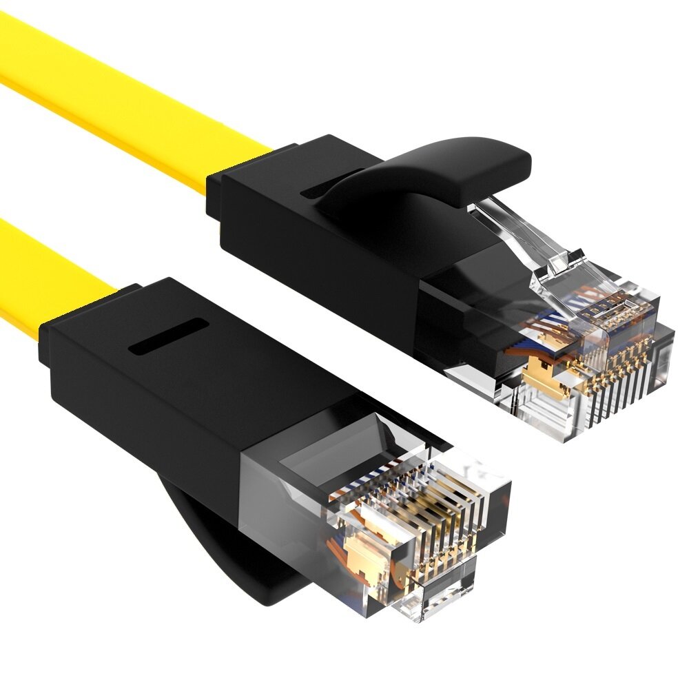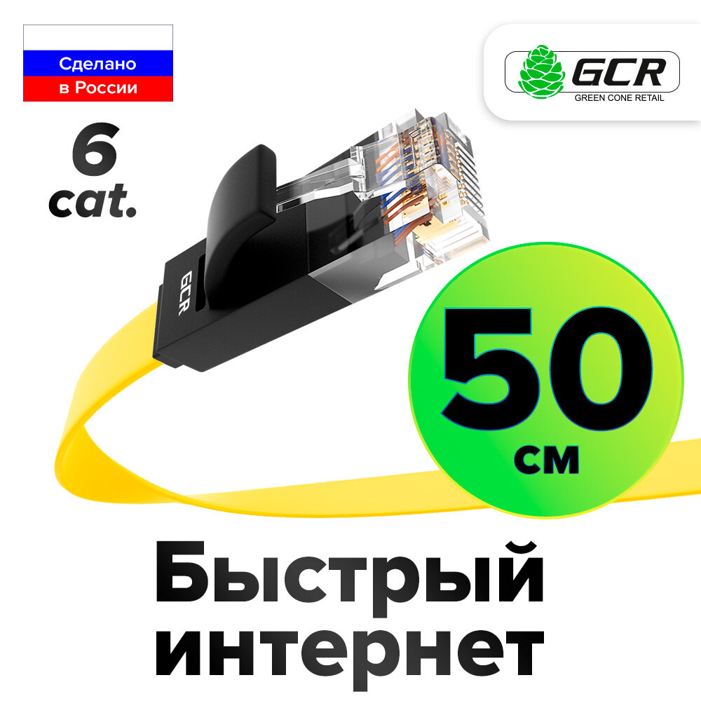 Купить LAN кабель PROF плоский UTP cat.6 10 Гбит/с RJ45 LAN компьютерный кабель для интернета медный контакты 24K GOLD (GCR-LNC62) желтый;черный 0.5м