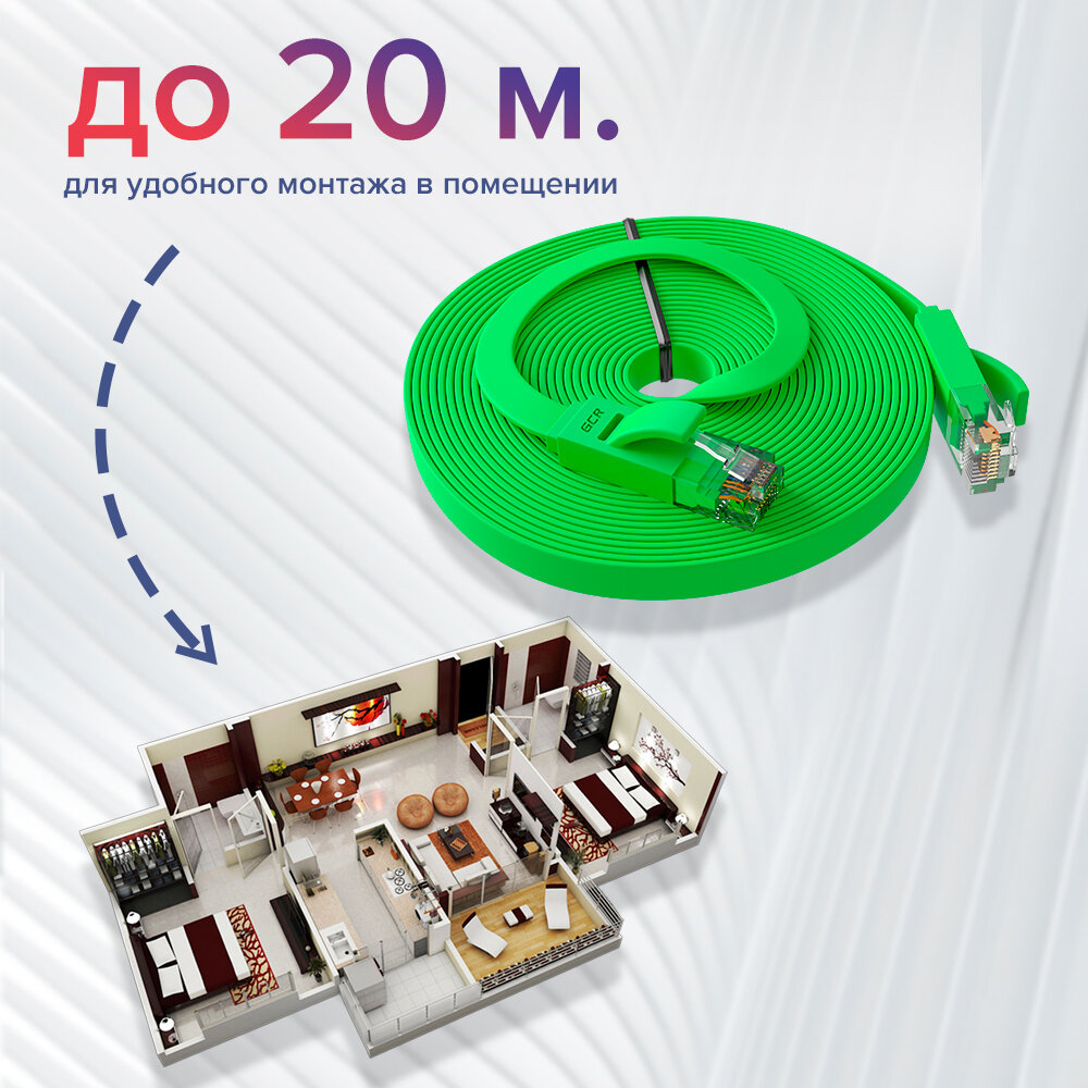 Патч-корд 20м GCR PROF плоский UTP cat.6 10 Гбит/с RJ45 LAN компьютерный кабель для интернета медный контакты 24K GOLD (GCR-LNC62) зеленый