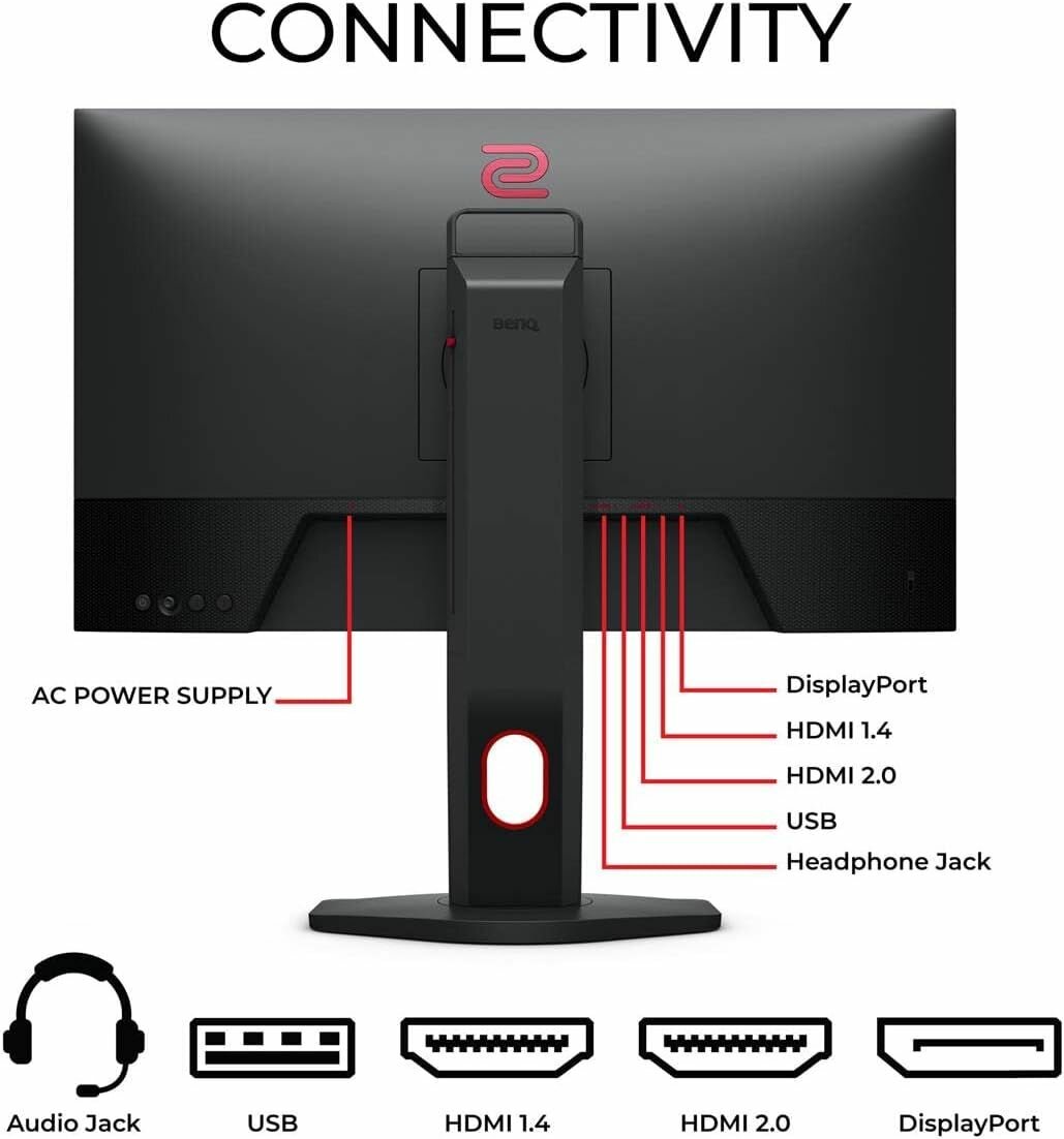 Наличие разъема DP, в отличии от старой модели XL2411, кабель DP идет в комплекте с монитором. Устойчивая подставка, монитор не шатается, ничего не люфтит, не скрипит и так далее. |