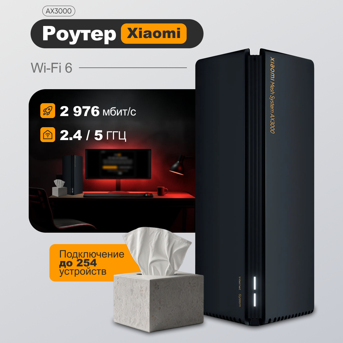 Купить Роутер Wi-Fi Xiaomi AX3000, двухдиапазонная работа, 3 LAN-порта, 2976 Mbps, чёрный