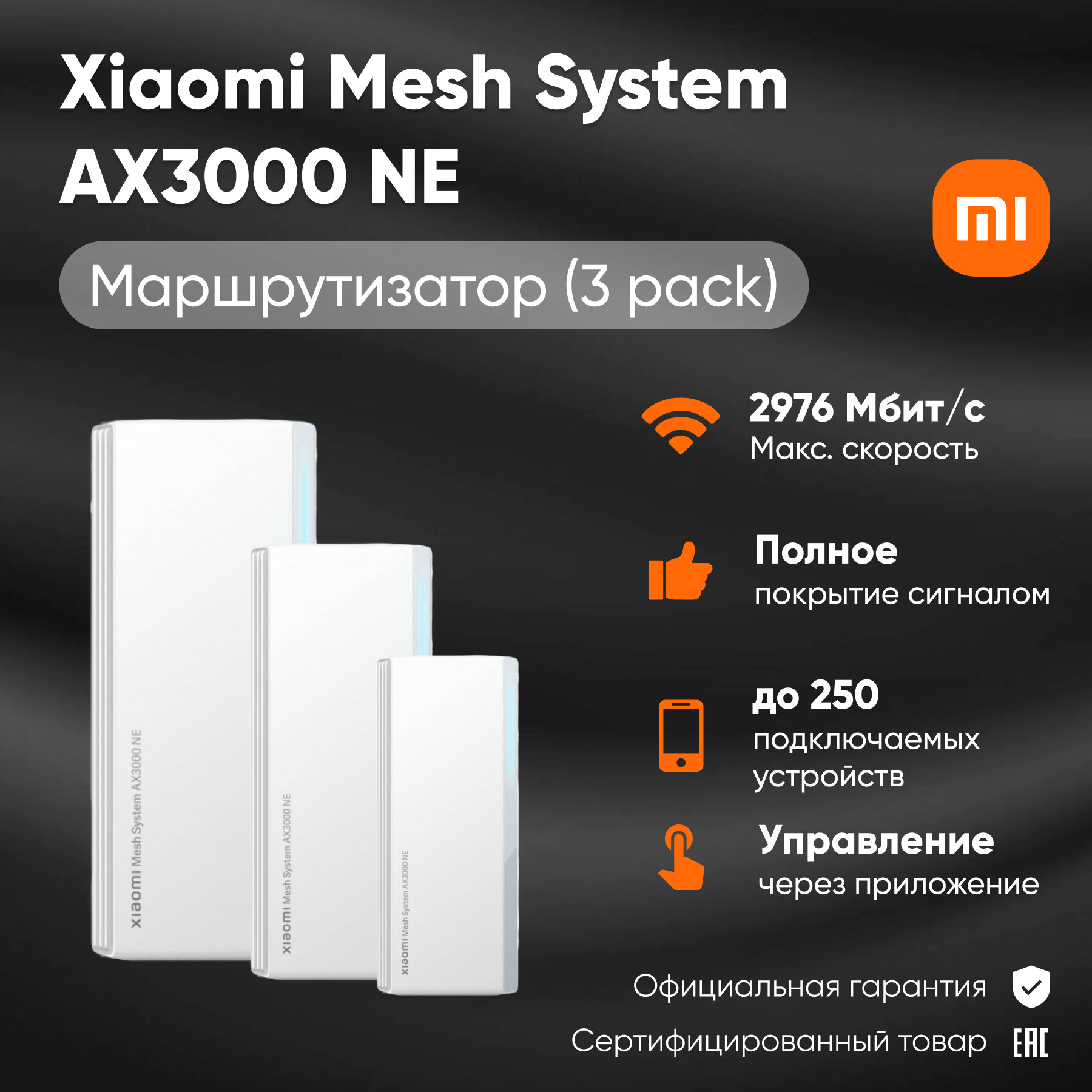 Wi-Fi Mesh система Xiaomi AX3000 RU (1 устройство), черный
