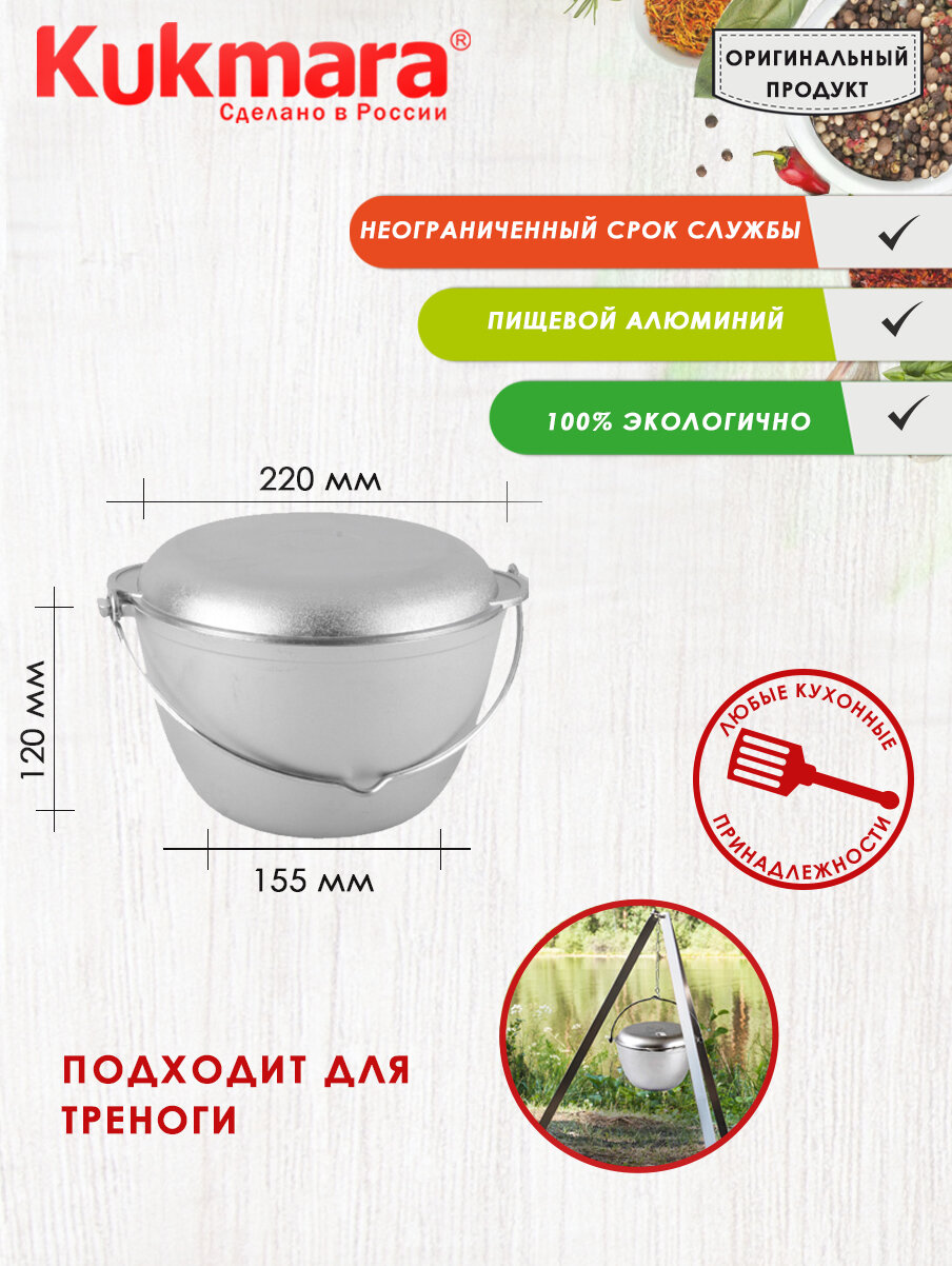 Котел Алюминий Литой 12.0Л Поход-универсальный (3) Kukmara