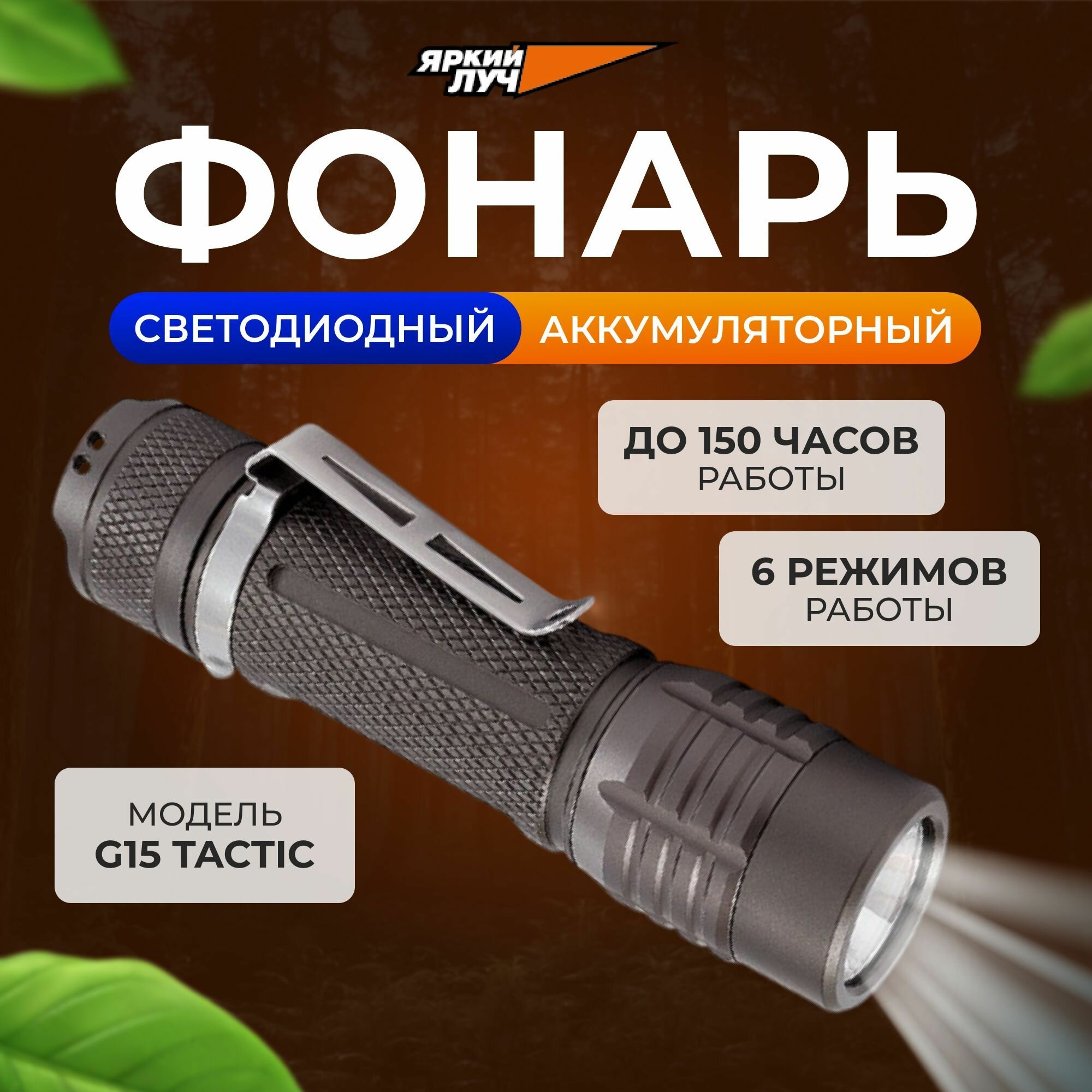 СохранитьФонарь ручной Яркий ЛУЧ G15 "Tactic" Nichia 219D max900лм, 5 реж., Ipx8, акк 18650 2600mAh с встр. З интересное: