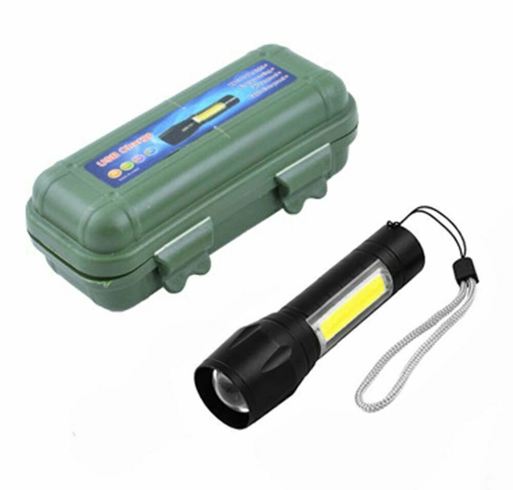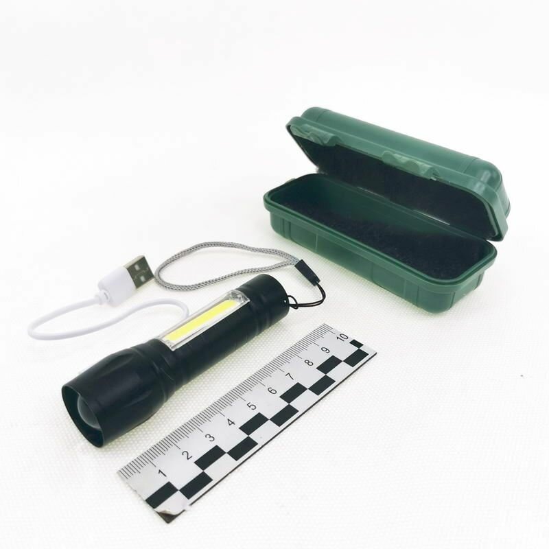 Светодиодный LED Фонарик с диодами XPE(сверхъяркий диод)+COB, фокусировка светового пятна, зарядка от USB, футляр интересное:
