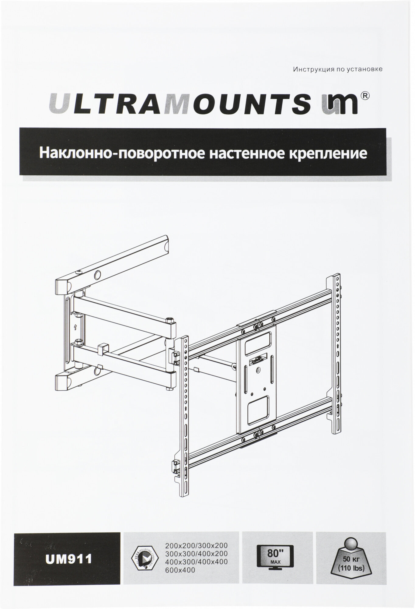 Кронштейн для телевизора ULTRAMOUNTS UM 911, 37-80", настенный, поворотно-выдвижной и наклонный, черный