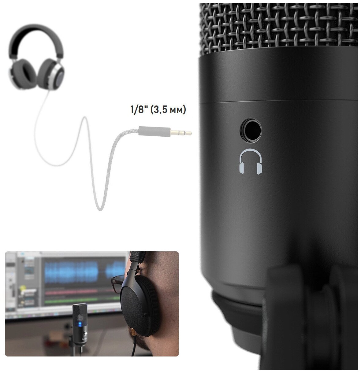Проводной микрофон Fifine K670, конденсаторный, настольный, USB, черный
