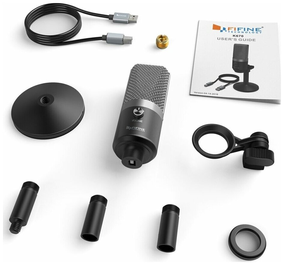 Ниже Вы можете прочитать отзывы на Проводной микрофон Fifine K670, конденсаторный, настольный, USB, серебро, ознакомится с подробными характеристиками, посмотреть интересные обзоры и фотографии на Проводной микрофон Fifine K670, конденсаторный, настольный, USB, серебро.
