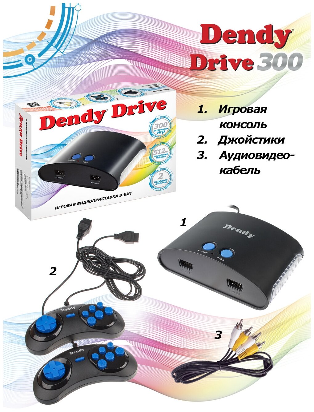 Игровая консоль DENDY 300 игр, Drive, черный (DRIVE 300)