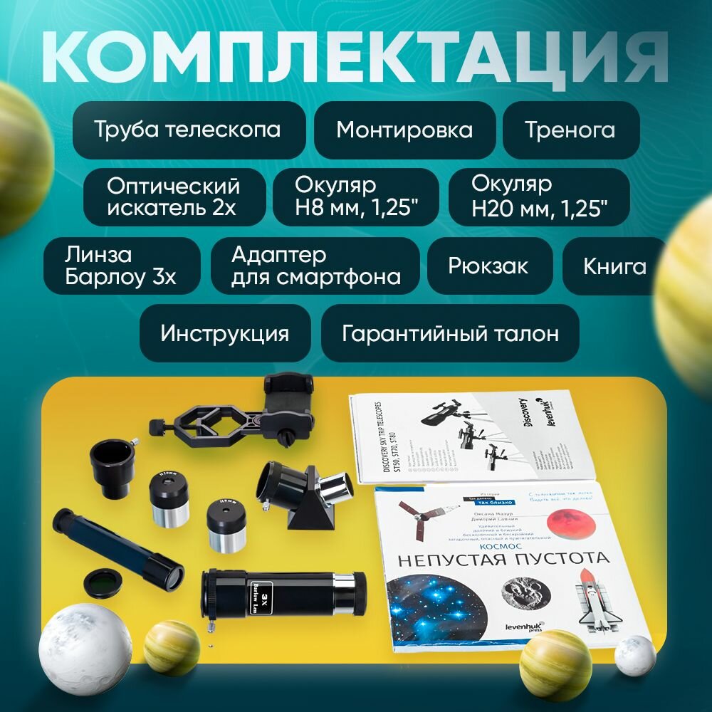 Телескоп Levenhuk (Левенгук) Discovery Sky Trip ST50 с книгой