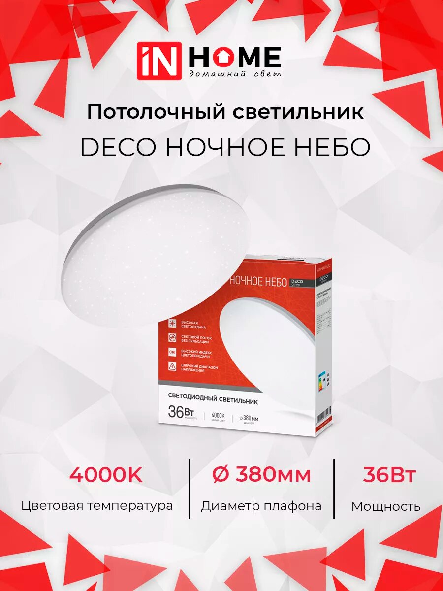 Светильник светодиодный DECO 36Вт 230В 6500К 2340лм 350х55мм ночное небо IN HOME 4690612033570 ( 1шт. )