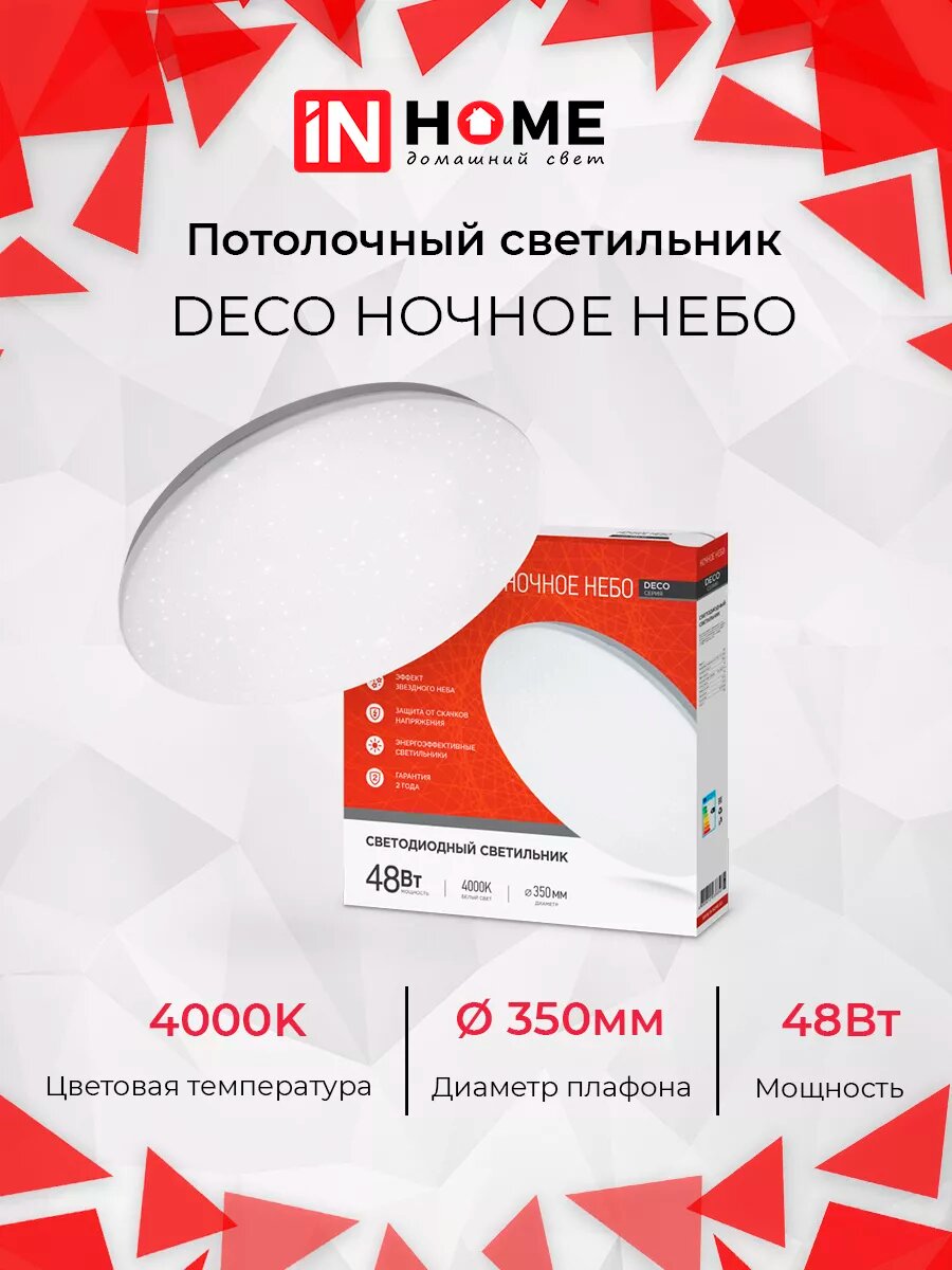 Светильник светодиодный DECO ночное небо 48Вт 230В 6500К 4320лм 380х55мм IN HOME 4690612038667