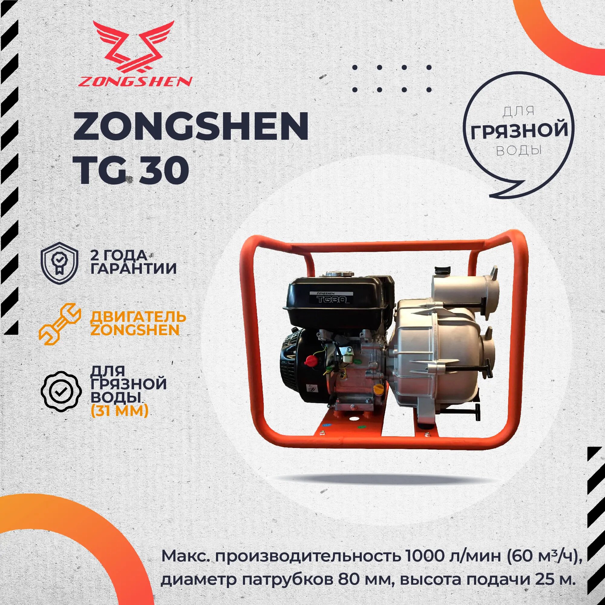 ZONGSHEN Мотопомпа бензиновая ZONGSHEN TG 30