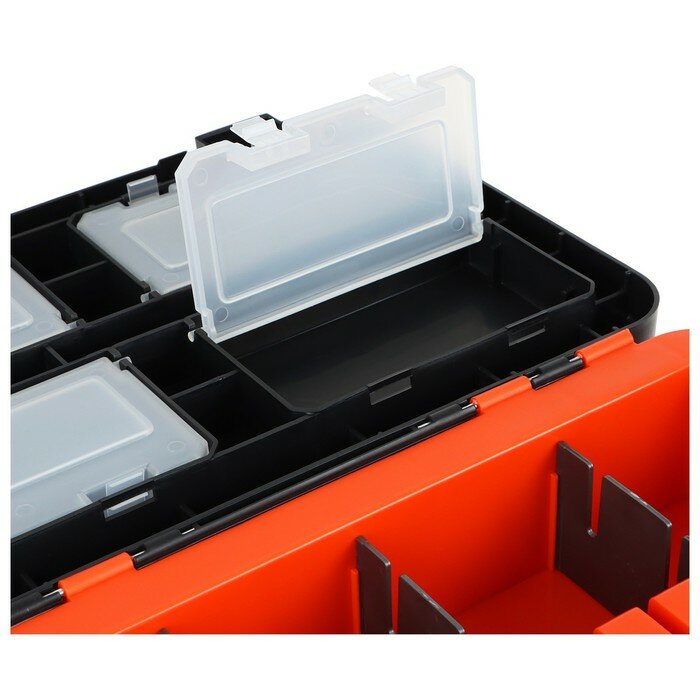 Ящик для рыбалки HELIOS двухсекционный HS-IB-19-SHO 39х26х40 см черный/оранжевый