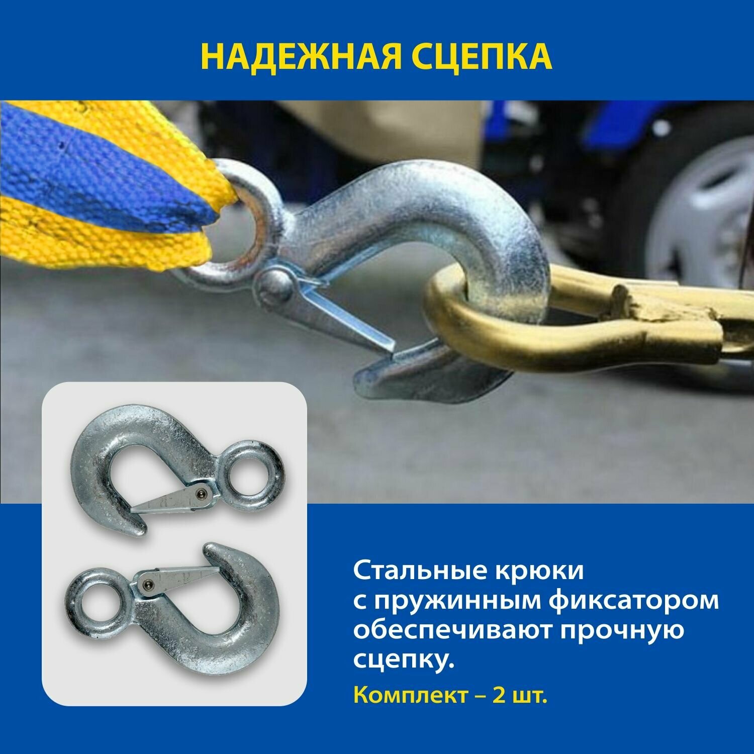 Трос буксировочный лента 5 т, 2 крюка, в блистере (стропа усиленная)