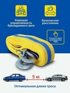 Трос Буксировочный До 3.5 Тонн, 5 Метров, Сверхпрочная Полипропиленовая Нить, Сумка, 2 Крюка, Устойчив К Воздействию Влаги И ...