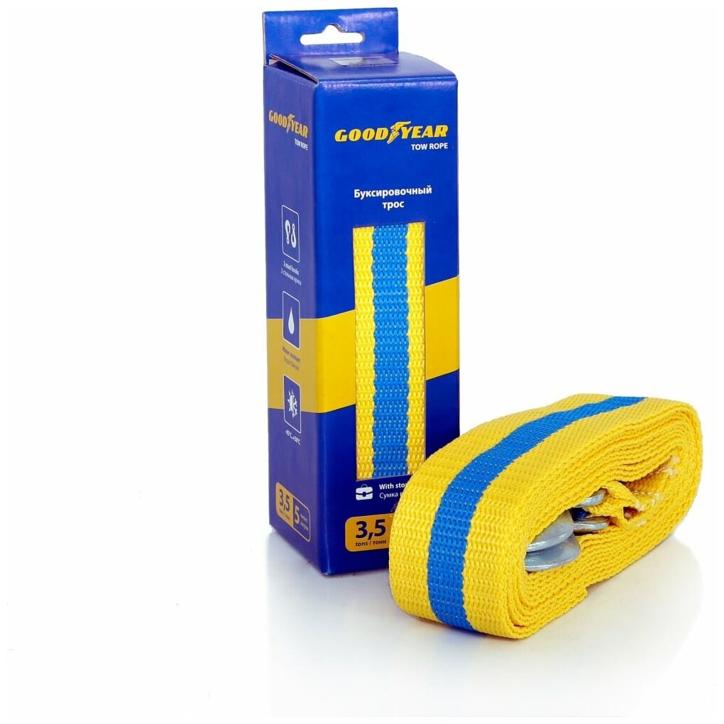 GOODYEAR GY004000 Трос буксировочный до 3.5 тонн, 5 метров, сверхпрочная полипропиленовая нить, сумка, 2 крюка, устойчив к воздействию влаги и нефтепродуктов 1шт