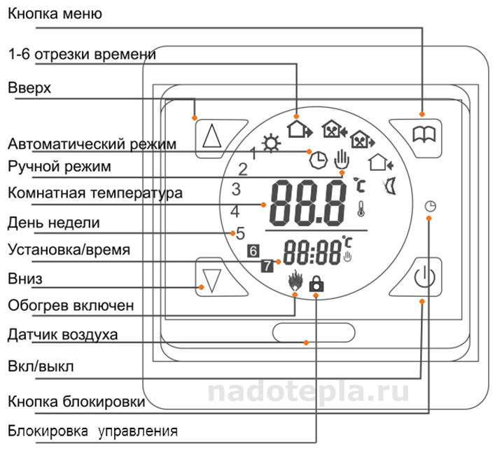 Программируемый терморегулятор теплого пола Menred E 91.716, сенсорный
