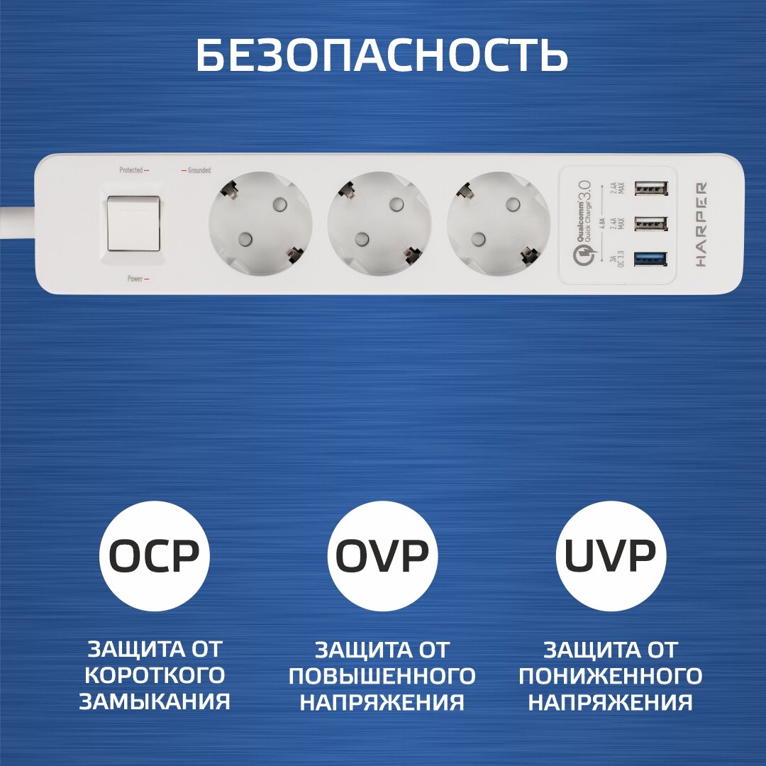 СохранитьСетевой фильтр Harper Белый, 3 розетки, 1,5 м, 4000 Вт, 16 A, 3хUSB (HARPER UCH-340 White QC3.0) интересное: