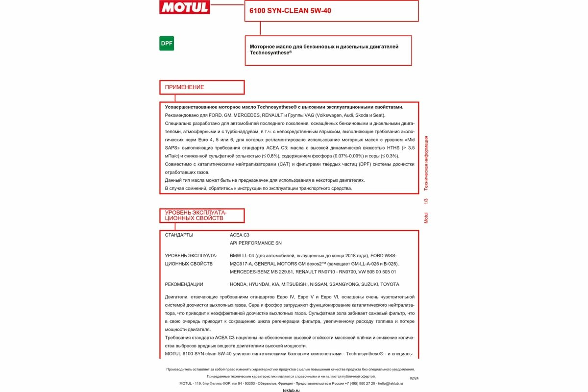 6100 Syn-clean 5W40 масло моторное синт. 4л. Motul (111863) 107942