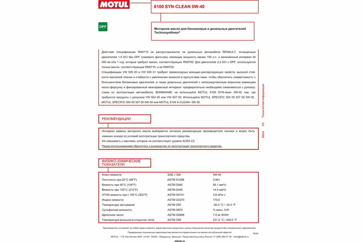 MOTUL Акция Масло Моторное Motul 6100 5w-40 Syn-Clean Technosynthese С3, Sn (5л.)