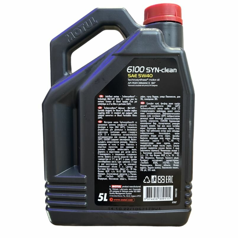 Моторное масло Motul 6100 Syn-clean 5w40 (5л) 111692 26308 .