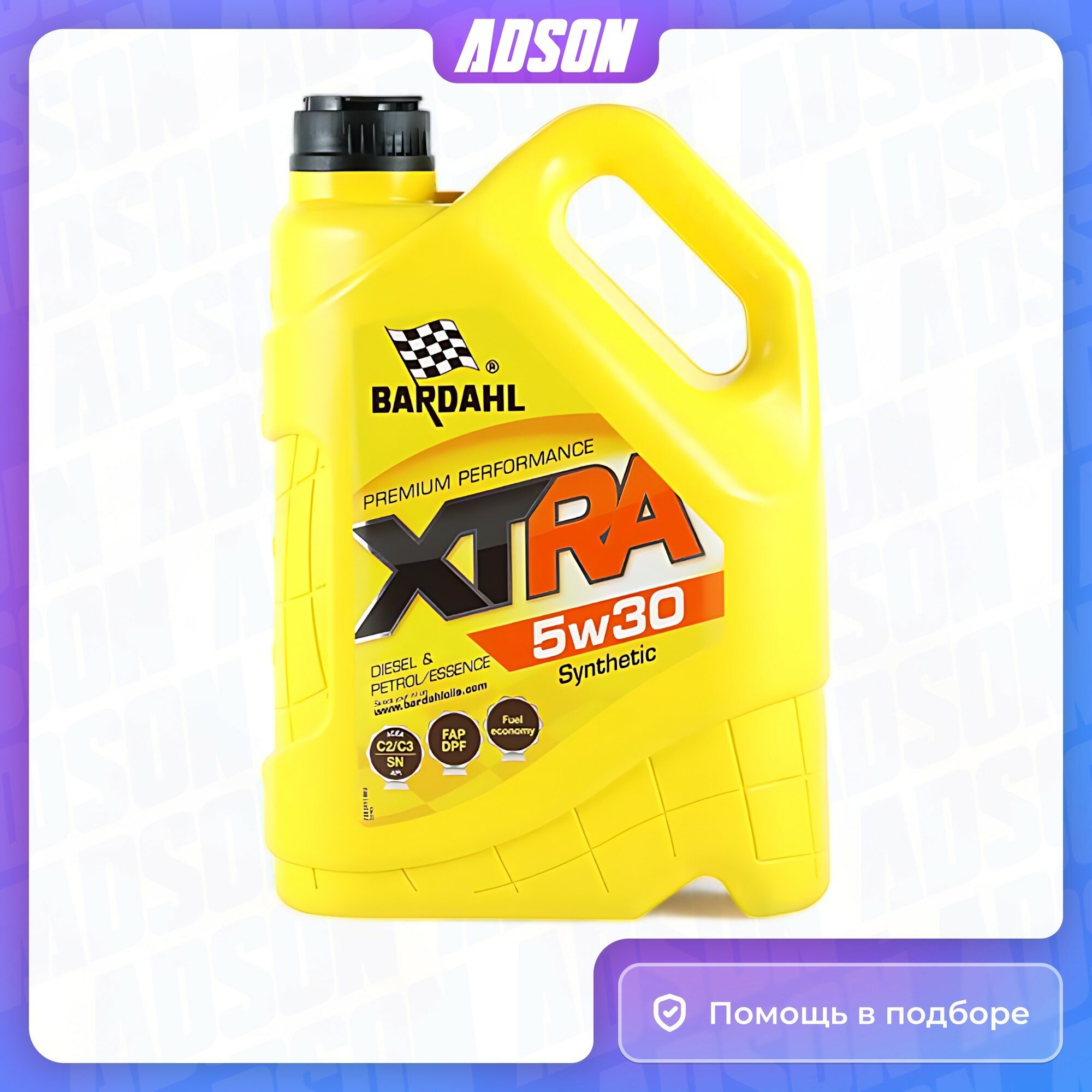 Масло моторное Bardahl XTRA 5w30 синтетическое, API SN, ACEA C2/C3, универсальное, 5л, арт. 34113