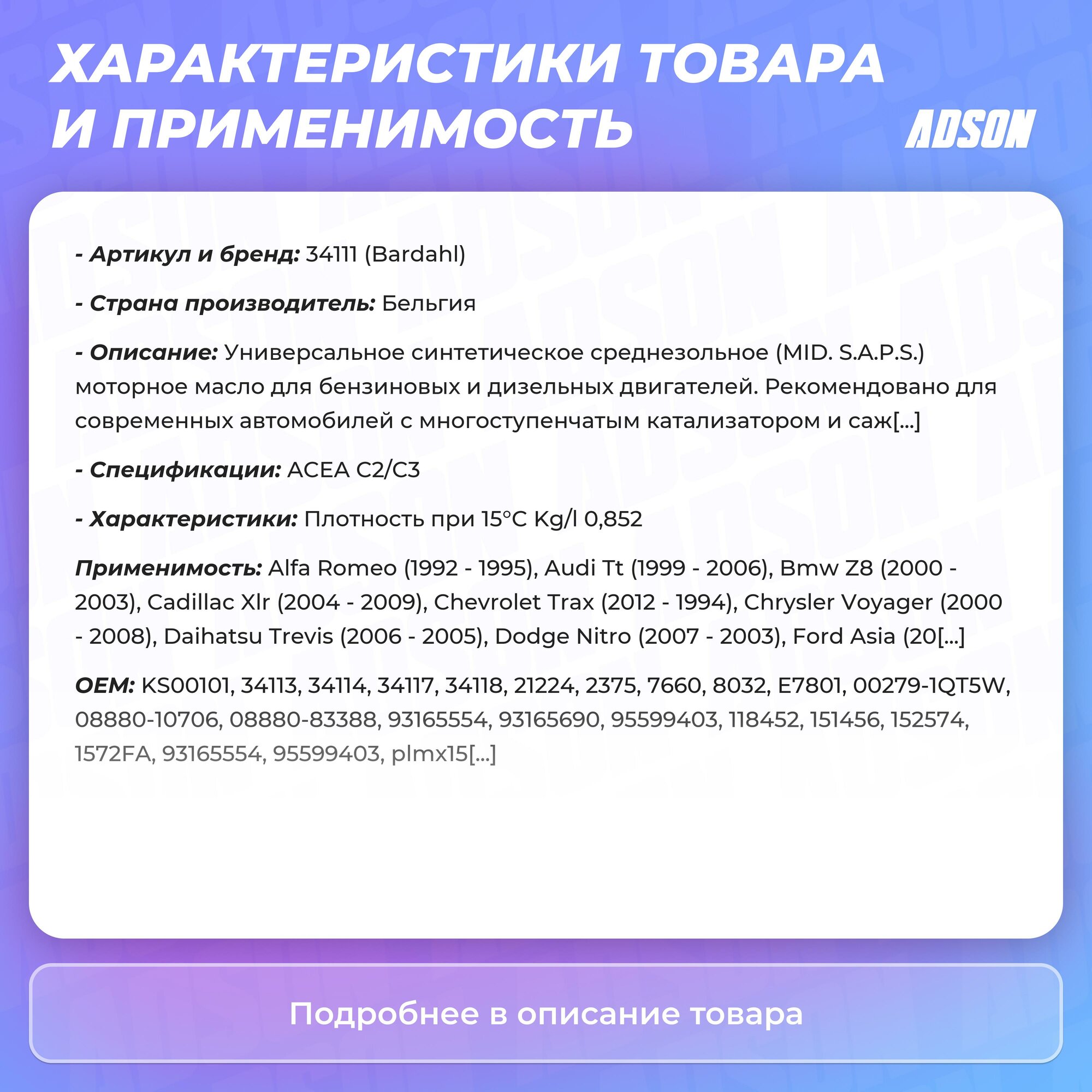 | Производитель | Bardahl |