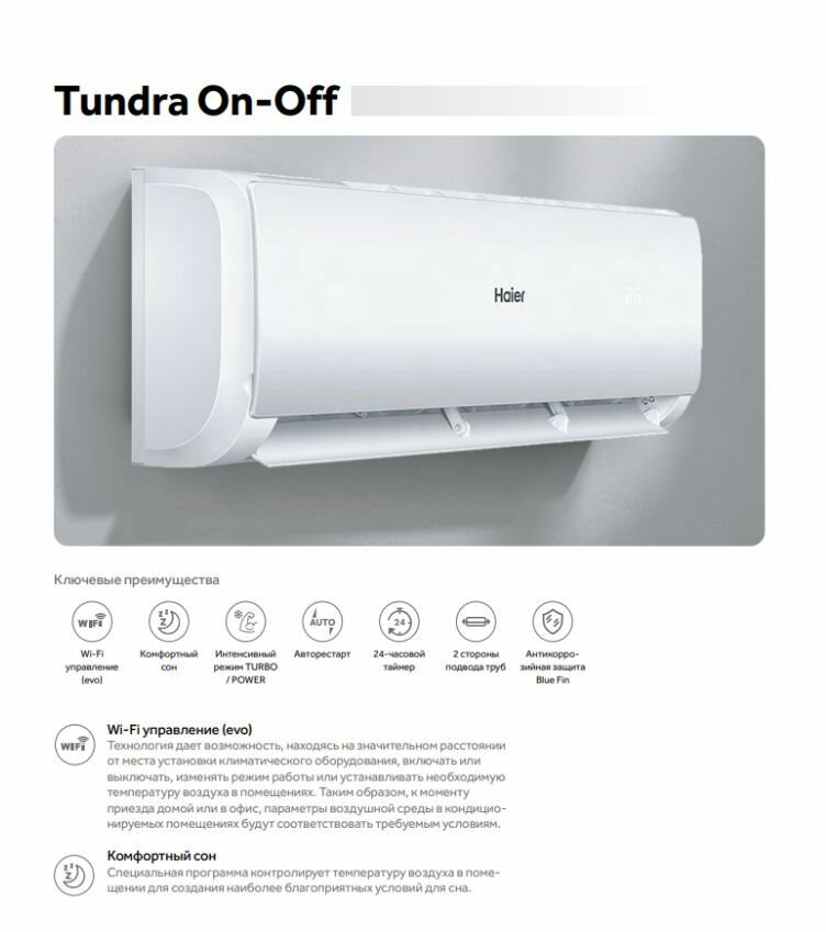 Haier HSU-12HTT03/R2 / HSU-12HTT103/R2 TUNDRA ON/OFF Настенный кондиционер