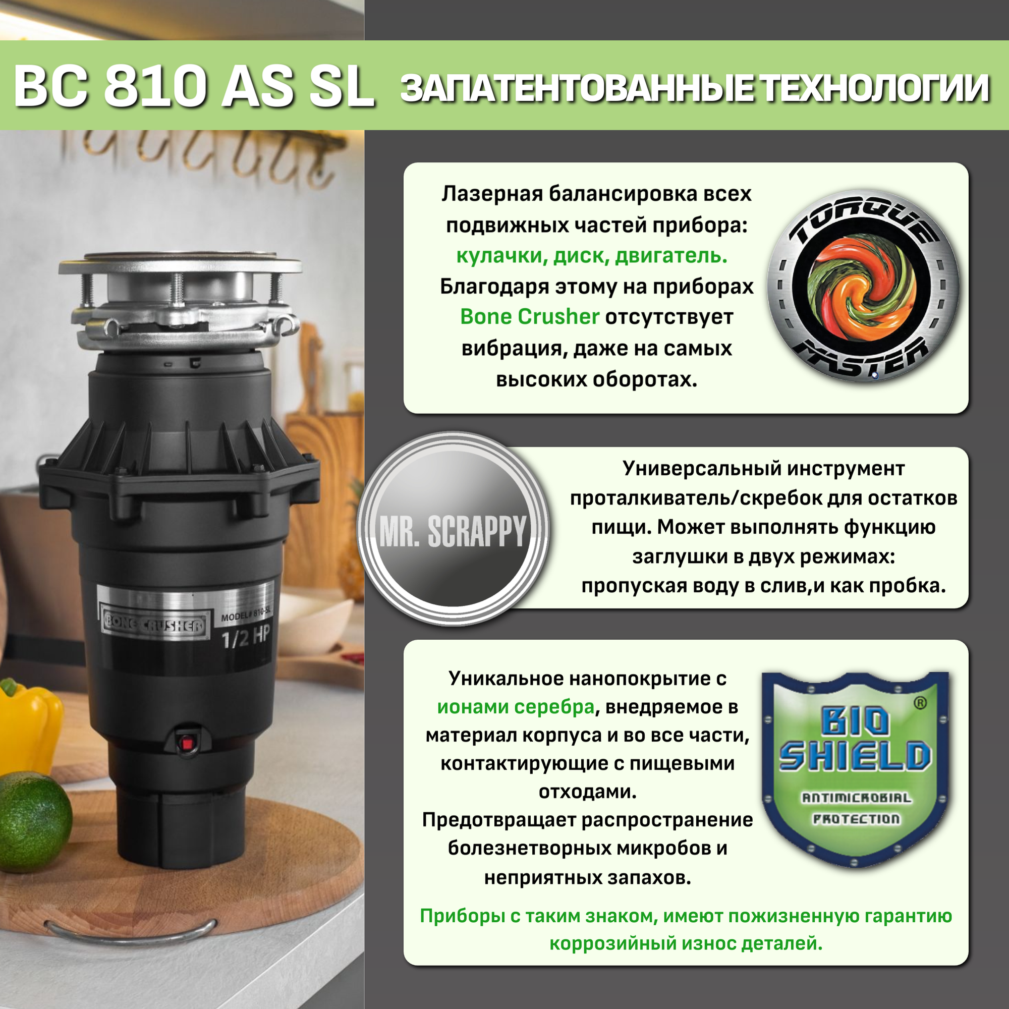 Купить Измельчитель пищевых и бытовых отходов в мойку кухонный (диспоузер) Bone Crusher 810 AS-Slim line