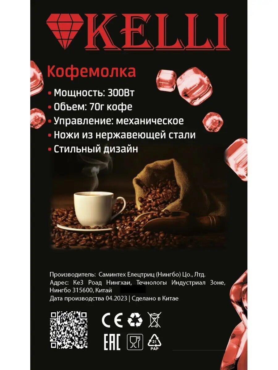 Кофемолка KELLI KL-5111 на 70 гр, 300 Вт, черный интересное: