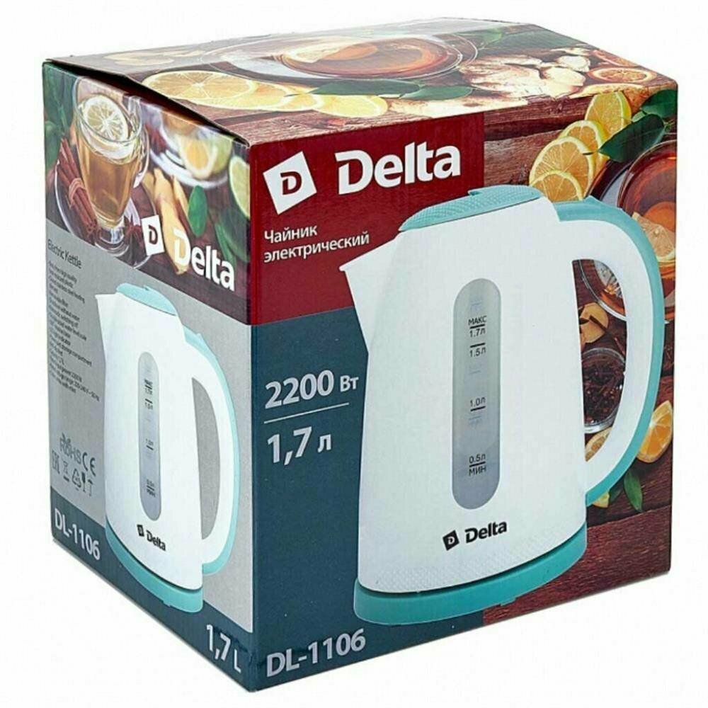 Чайник электрический Delta DL-1106 1,7л, 2200 Вт, белый с мятным .