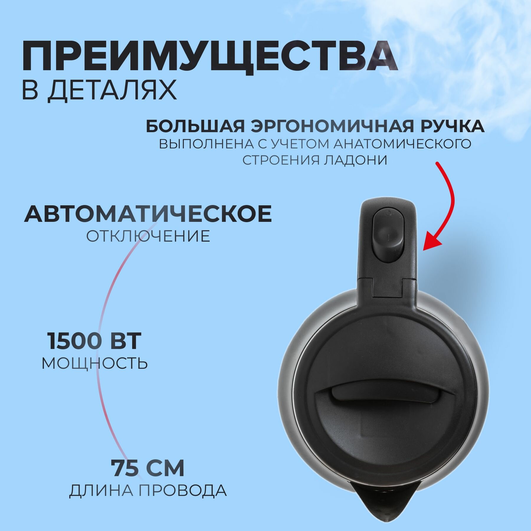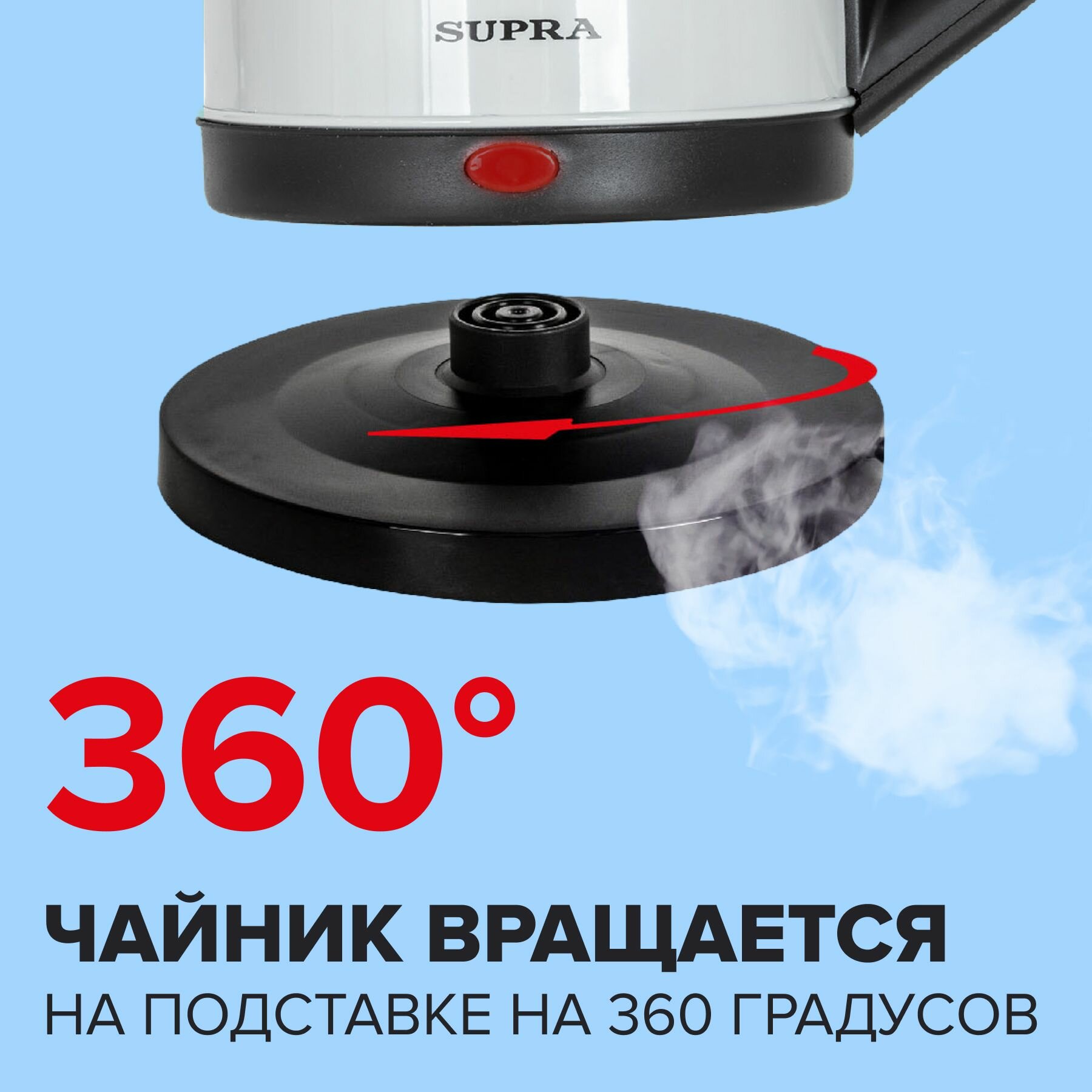 Чайник электрический Supra KES-1843S, 1.8 л, 1500 Вт, черный/белый