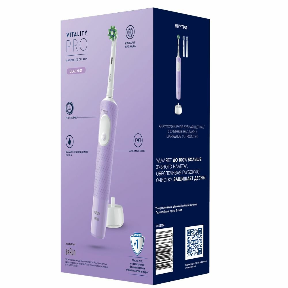 СохранитьЭлектрическая зубная щетка Oral-B Vitality Pro, Лиловая - 1 шт с дополнительными сменными насадками Sensitive Clean - 2 шт интересное:
