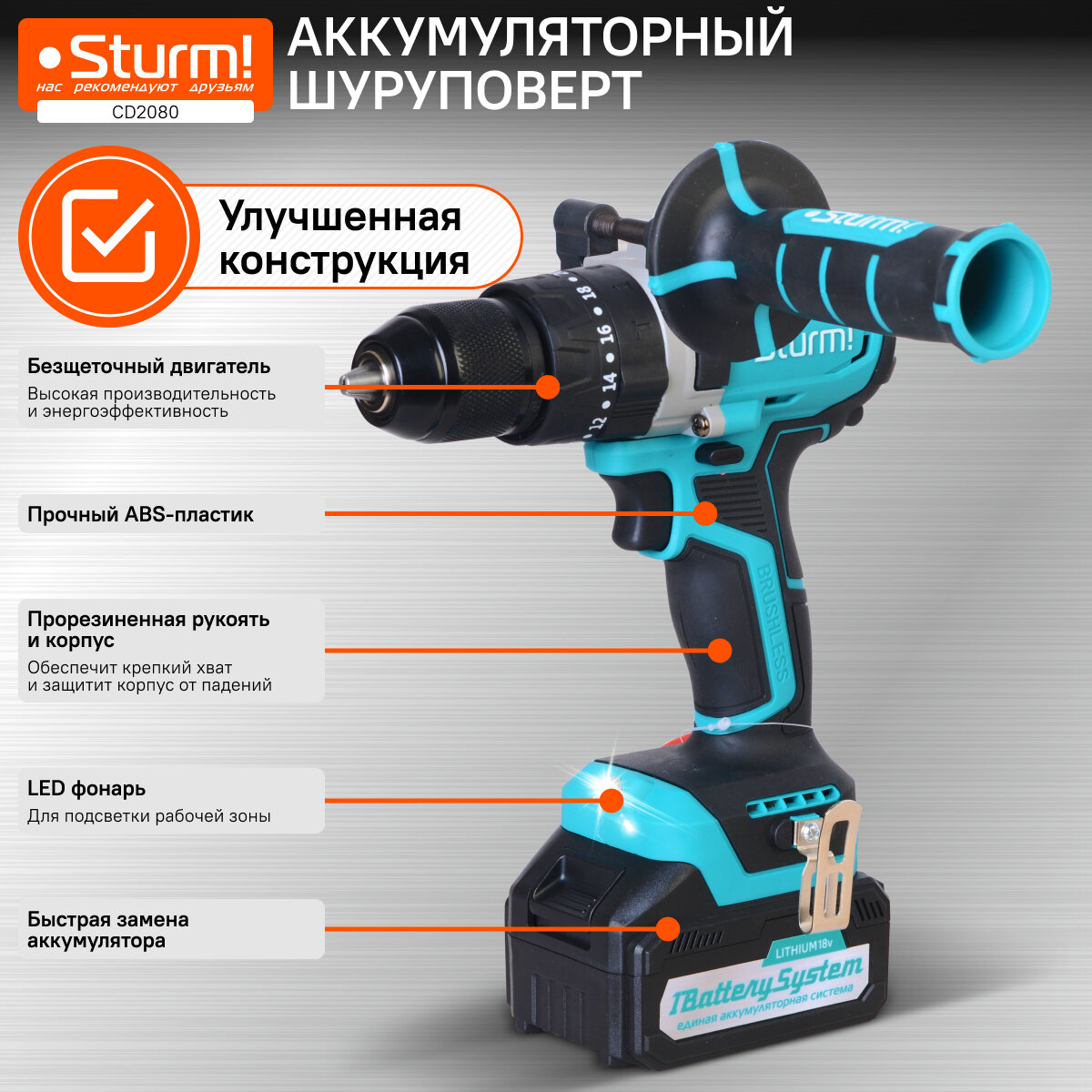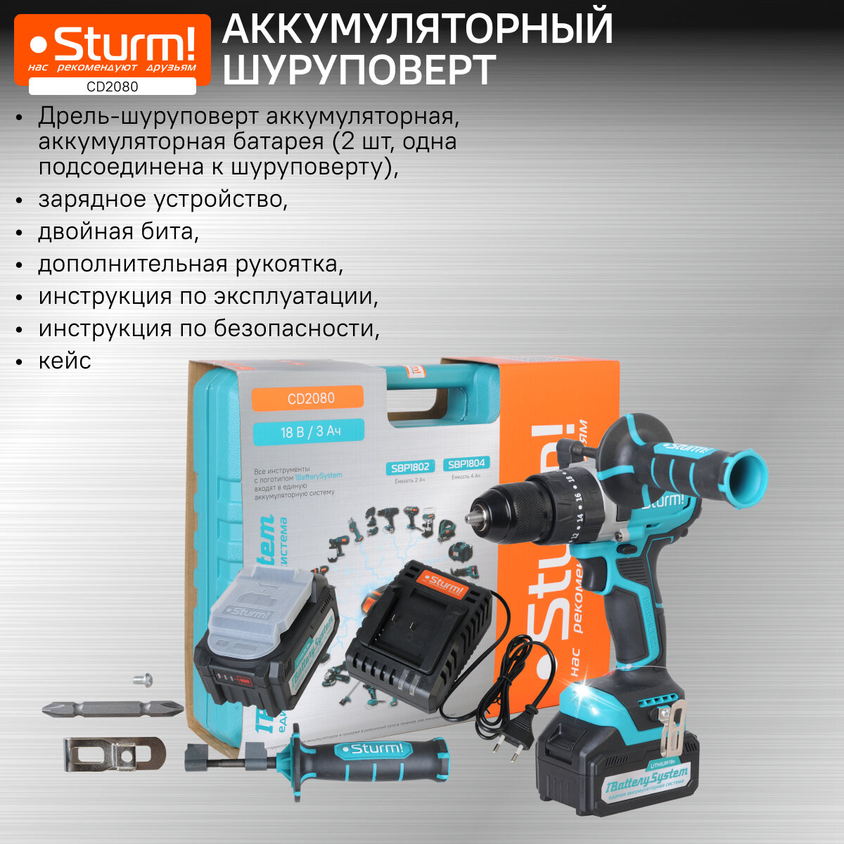 Купить Аккумуляторный шуруповерт Sturm! CD2080