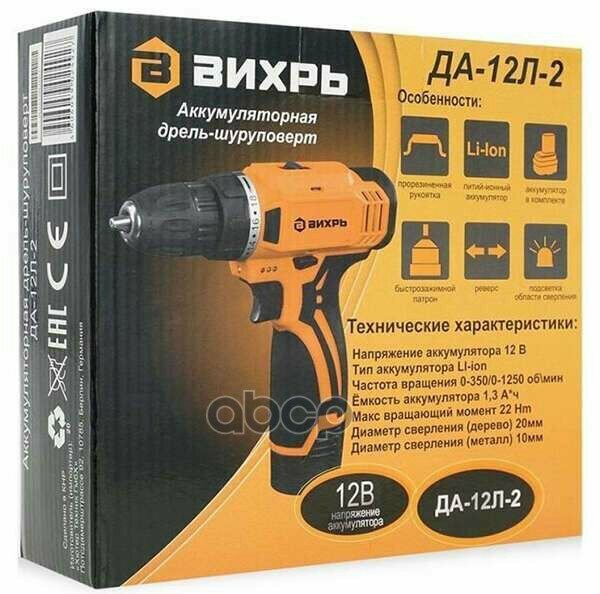 Дрель-шуруповерт Вихрь ДА-12Л-2 2Ач, с одним аккумулятором [72/14/14]