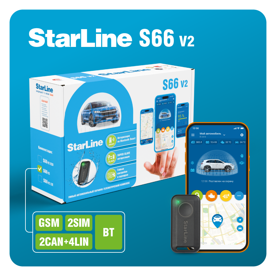 Купить Автосигнализация StarLine S66 BT 2CAN+2LIN GSM