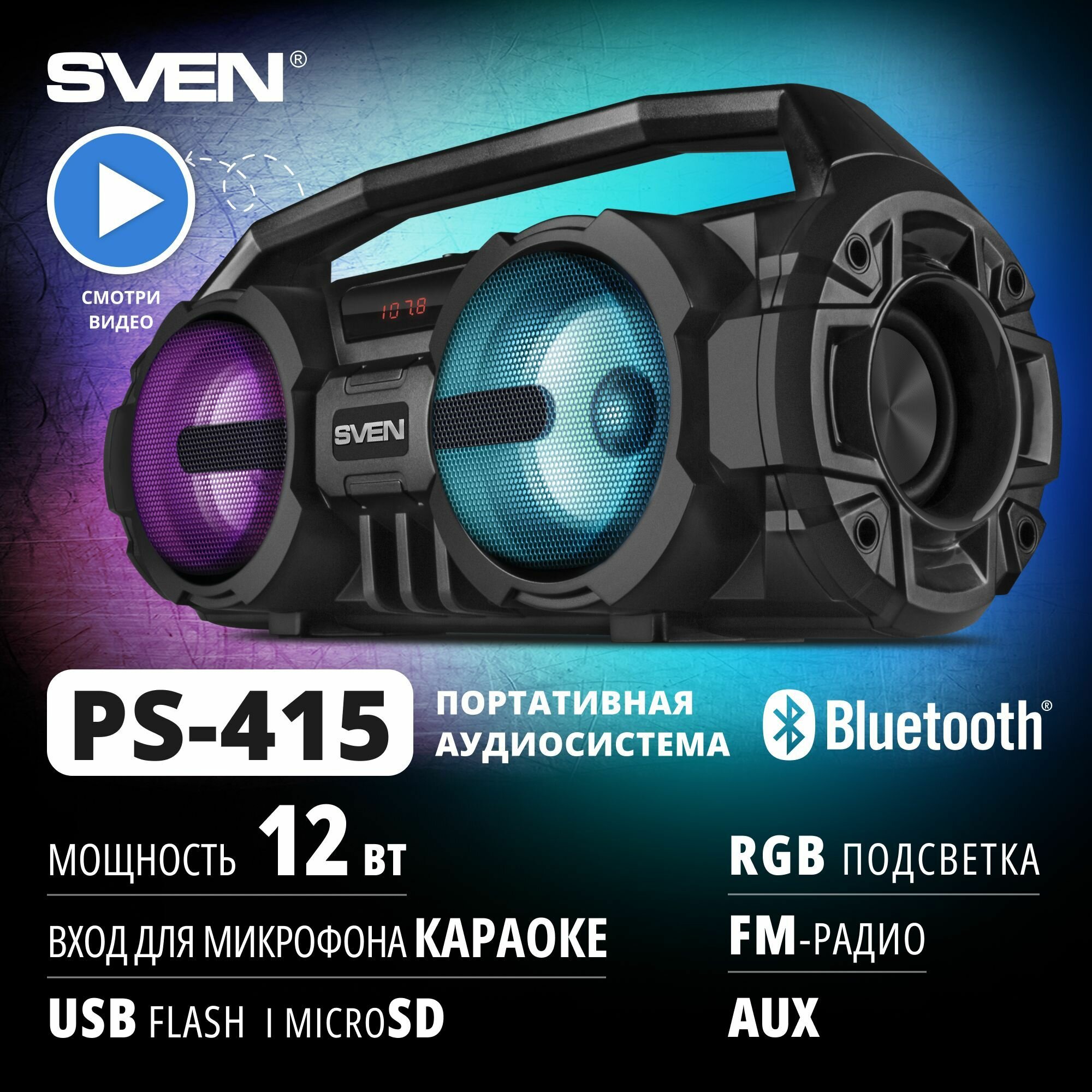 Многофункциональная портативная акустическая система c подсветкой SVEN PS-415