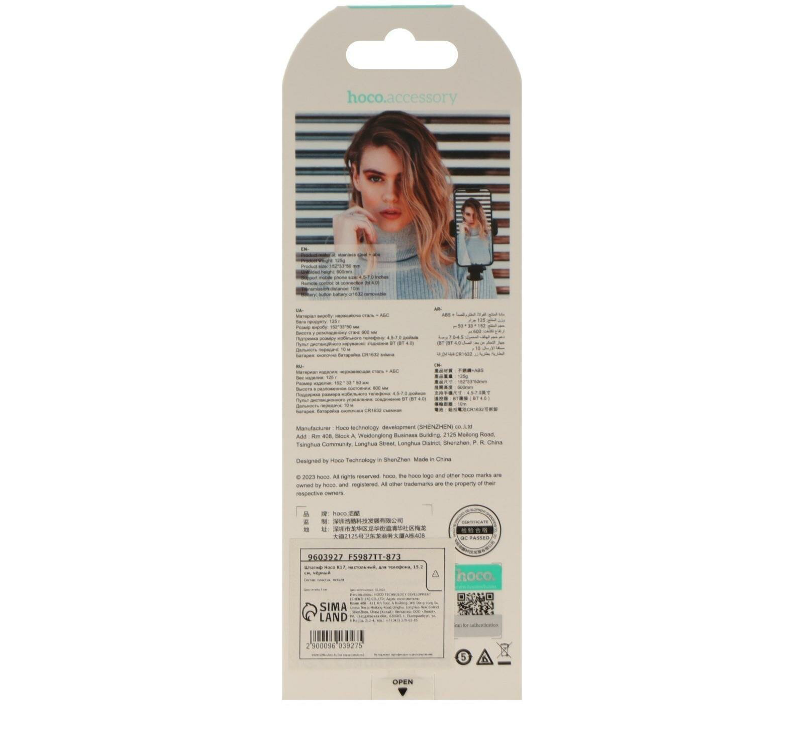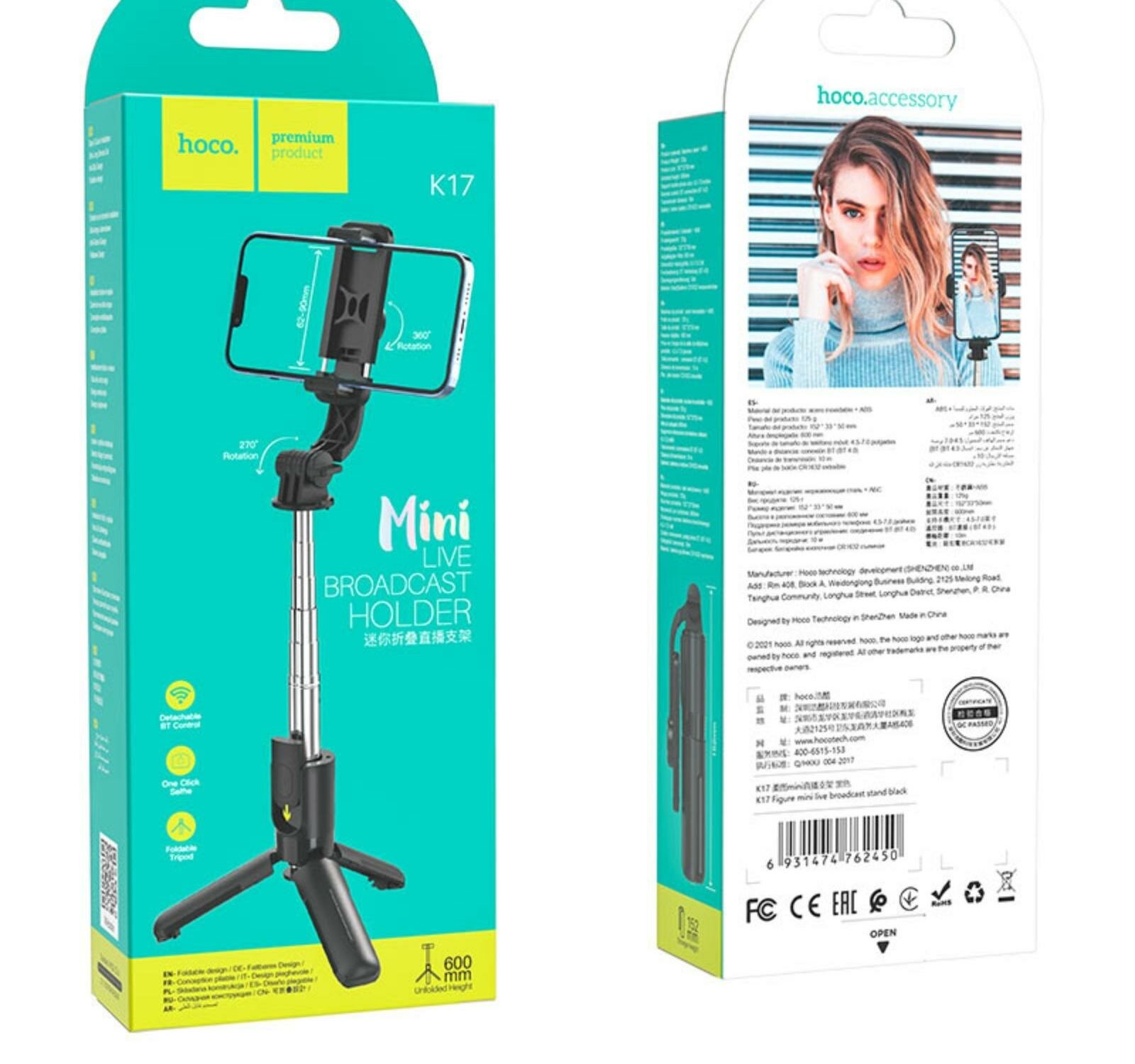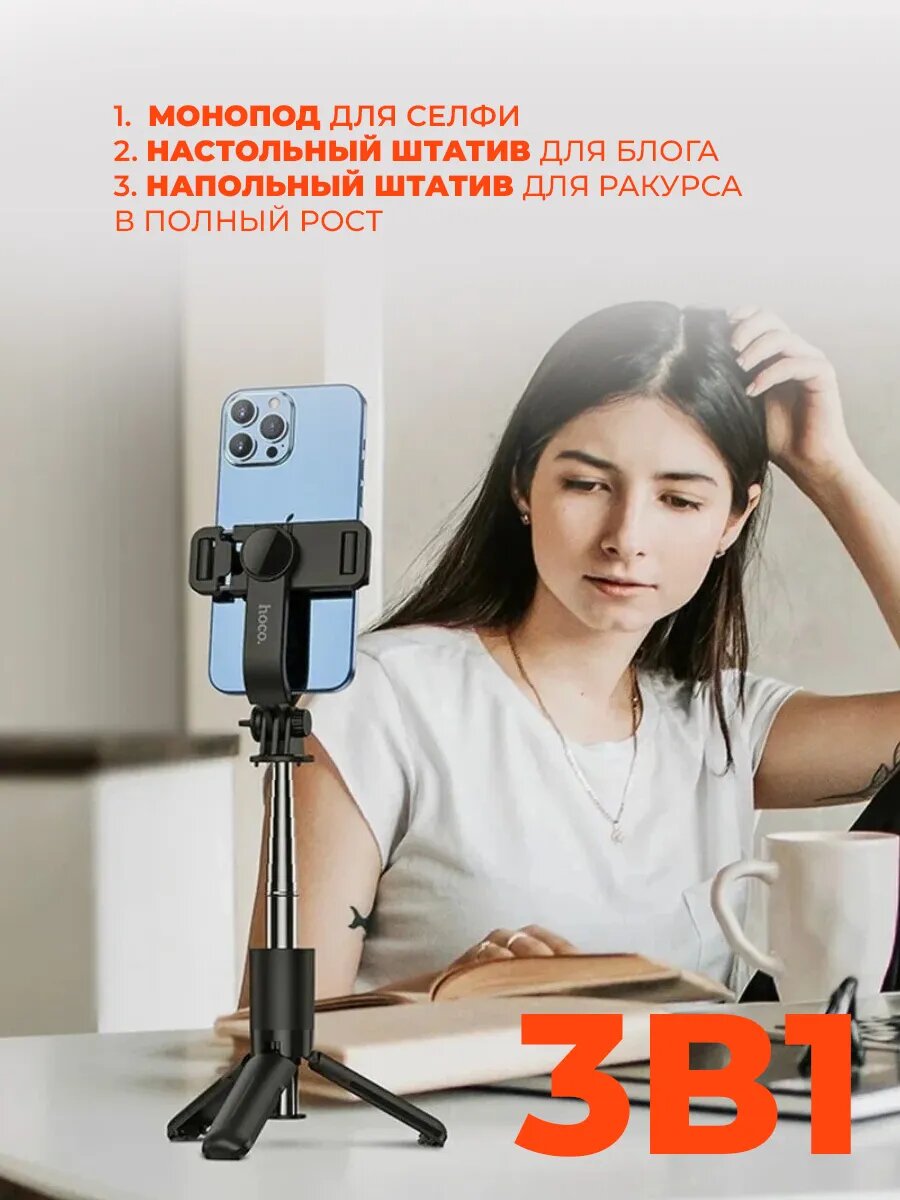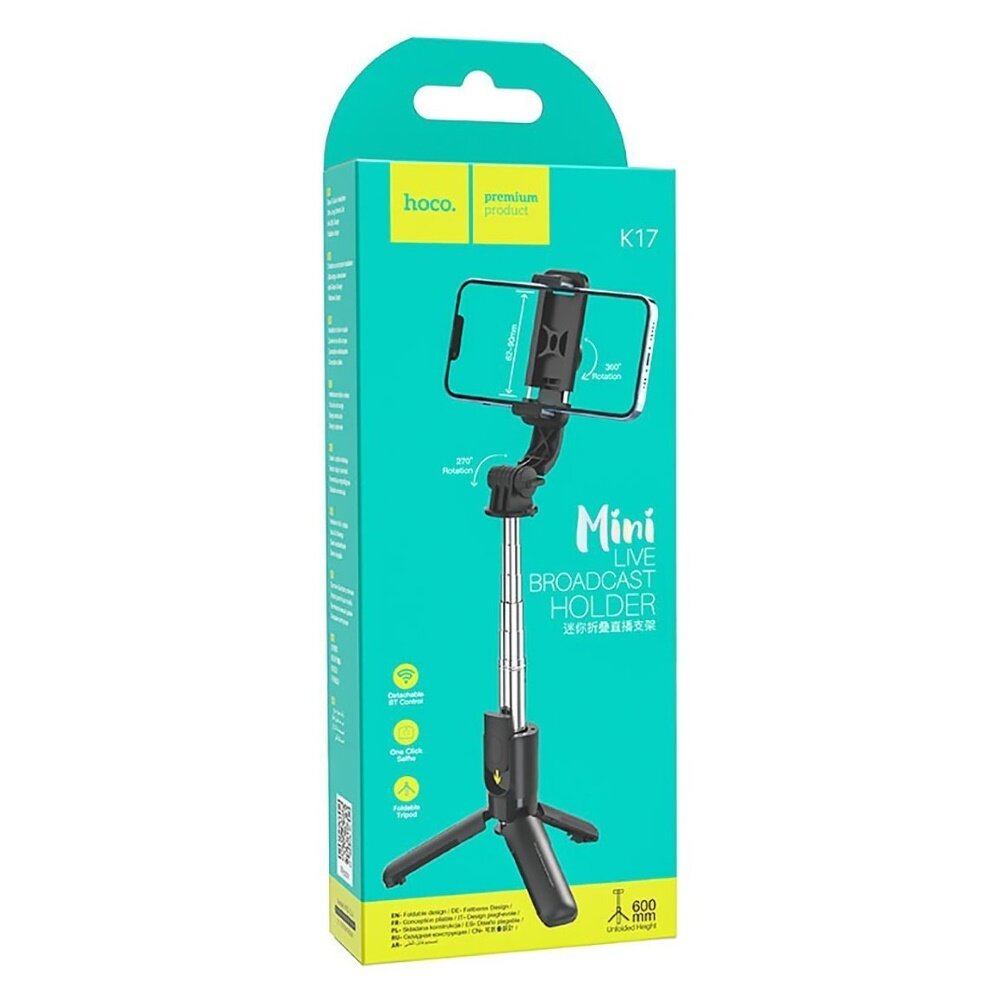Монопод для селфи HOCO K17, bluetooth, штатив, трипод, с пультом управления, чёрный