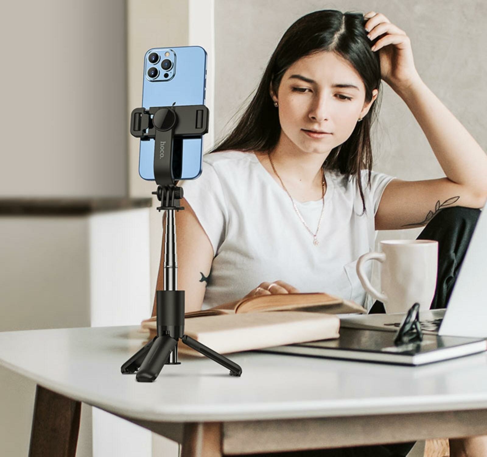 Селфи K17, Hoco, беспроводной трипод с пультом, черный