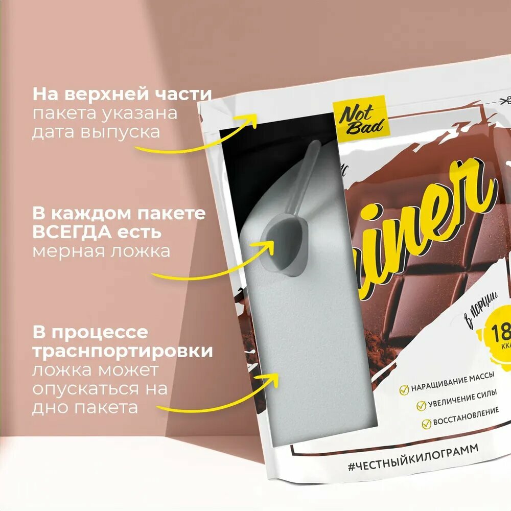 СохранитьГейнер для набора мышечной массы NOTBAD Gainer, Шоколад, 1000 г интересное:
