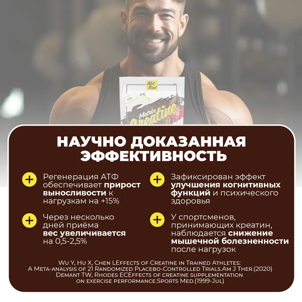 Ниже Вы можете прочитать отзывы на Креатин моногидрат NOTBAD Creatine Matrix, Кола, 250 г, ознакомится с подробными характеристиками, посмотреть интересные обзоры и фотографии на Креатин моногидрат NOTBAD Creatine Matrix, Кола, 250 г.