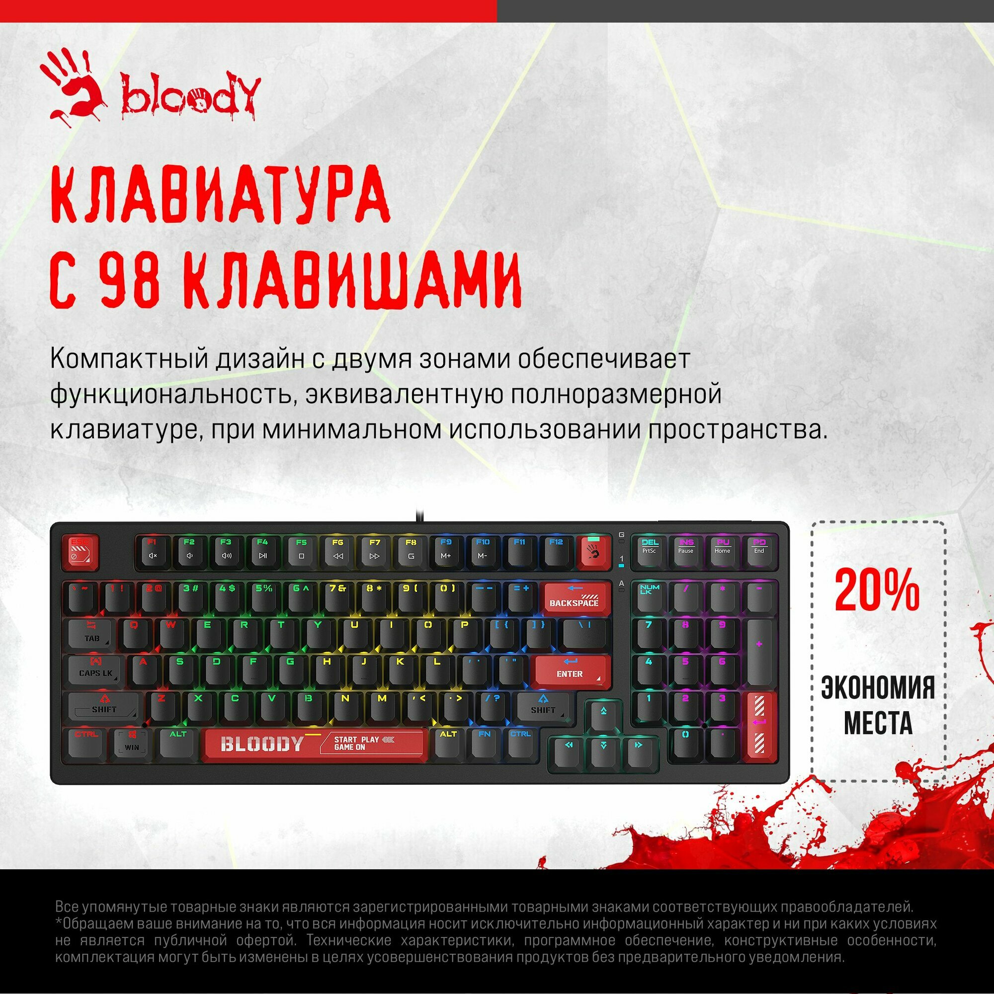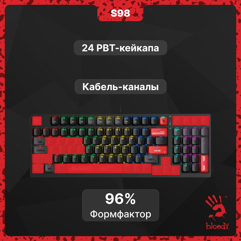 Клавиатура A4Tech Bloody S98, механическая, черный/красный, USB, RGB