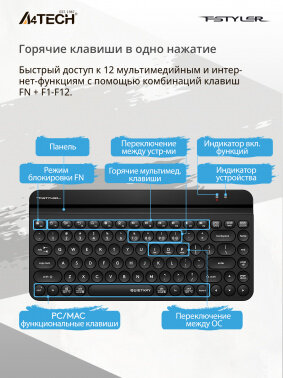 Клавиатура A4Tech "Fstyler", черно-серая, USB, беспроводная, Bluetooth, Radio (FBK11 GREY)